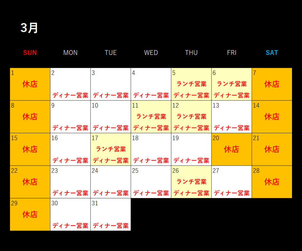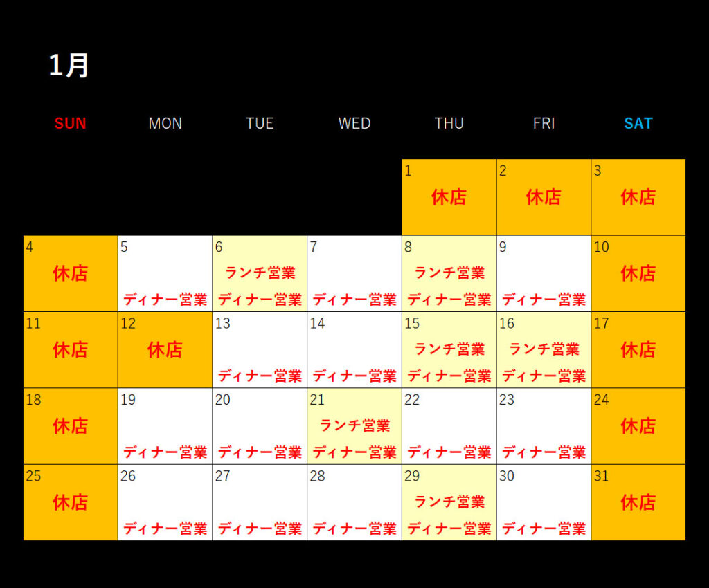 2026年1~3月の休業日を下記の通りお知らせいたします。